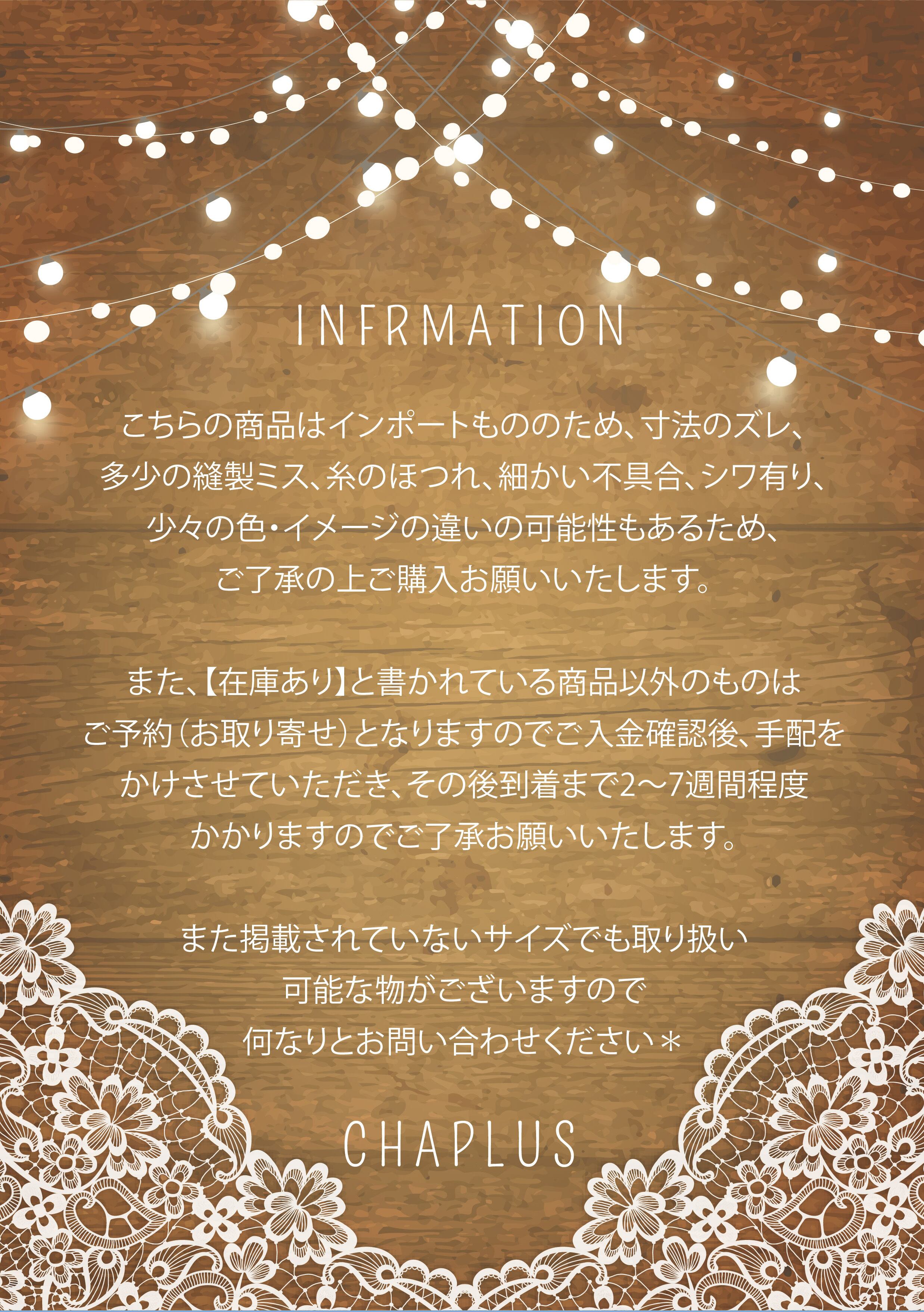 こちらの商品はインポートもののため、寸法のズレ、多少の縫製ミス、糸のほつれ、細かい不具合、シワ有り、少々の色・イメージの違いの可能性もあるため、ご了承の上ご購入お願いいたします。
